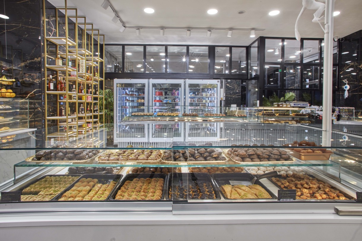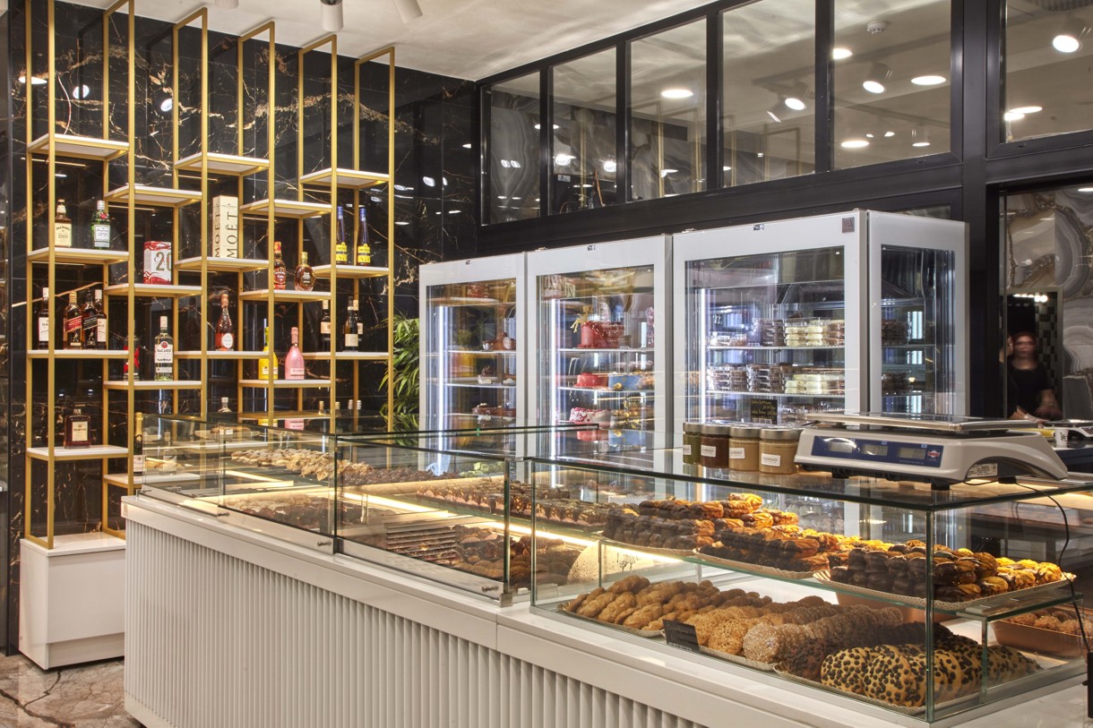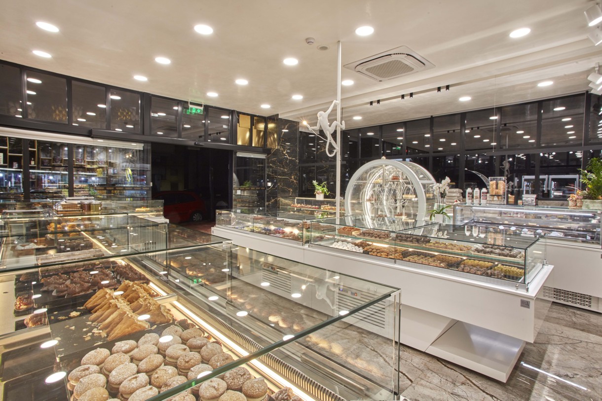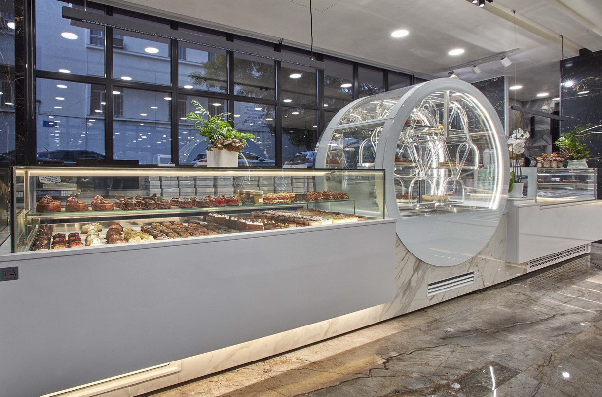 A brand-new pastry shop has opened its doors in the Drapetsona area.The owner entrusted the company D. ANTONOPOULOS ABEE with the study, design, and supply of the equipment.The aim was to create a modern and fully equipped store, ready to meet the new challenges and trends of the market. Crystal-clear display cases and high-performance refrigerators deliver a flawless result and contribute to the excellent quality of the products.The highlight of the store is the Pastry Wheel refrigerator, which stands out for its unique design and the rotating movement of the desserts—adding a touch of luxury to both the product presentation and customer service.The impressive image is perfectly completed by the lighting design, with special emphasis on every detail of the unparalleled aesthetic that captures attention in the area.